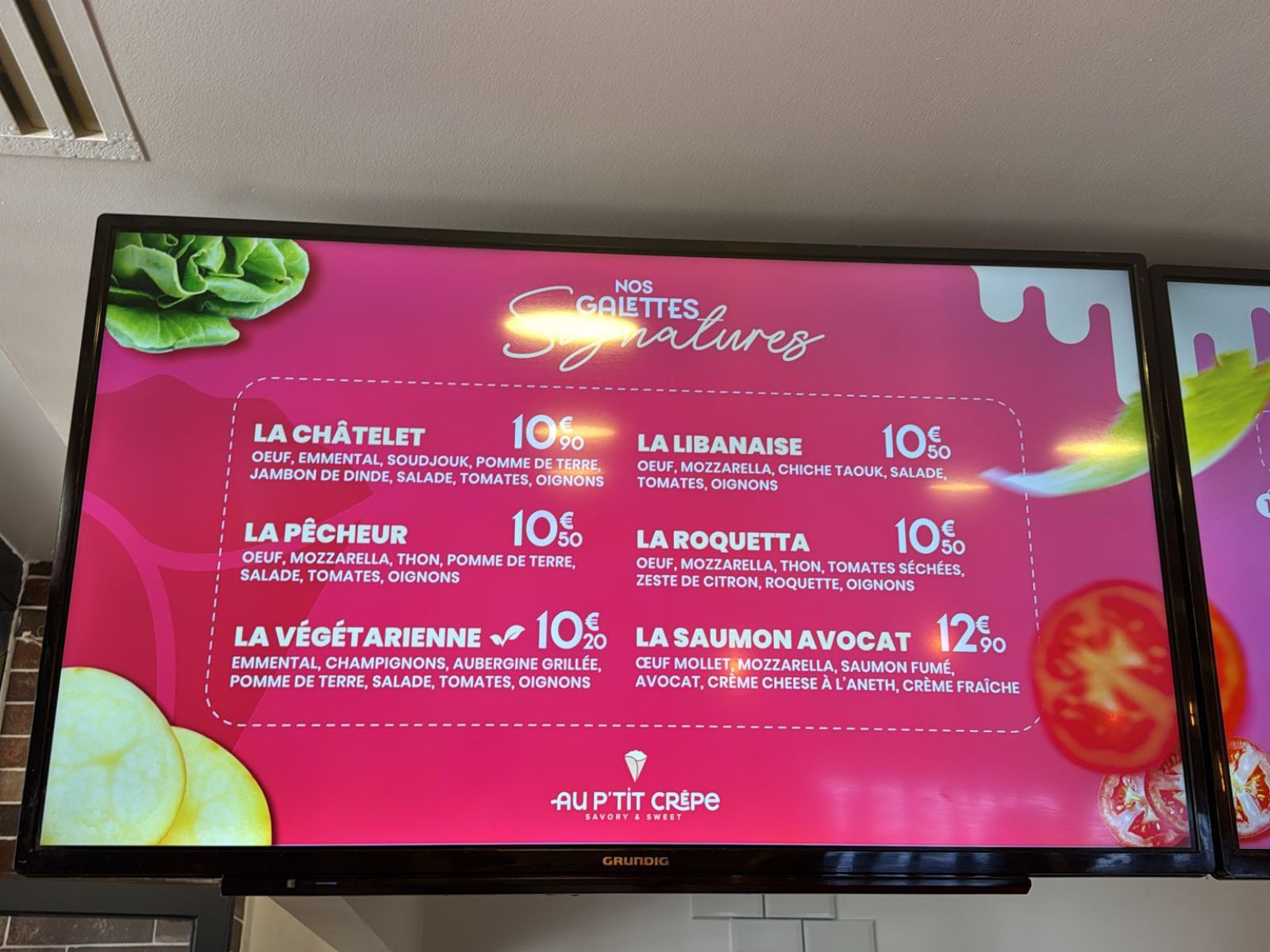 Buen lugar de Crepes en el barrio latino de Paris. Deliciosos crepes dulces y salados. Los puedes hacer al gusto o de una carta. Se pide a través de una pantalla táctil tipo McDonalds. Buen servicio. Aseos 🚻 limpios. Precio razonable para ser París. Crepe dulces sobre 8 euros y salados alrededor de 10€. Bebidas a buen precio. Recomendable.