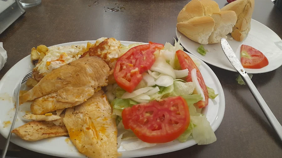 No es el típico bar de carretera. Cuando ves que hay muchos camiones aparcados, ello suele indicar que en un restaurante se come bien... Hice una parada en un largo viaje para almorzar y pedí el menú del día. Me llamó la atención la gran variedad de platos que tenía, tanto primeros como segundos y postres. Incluye 1 bebida y un bollo de pan inmenso. Las raciones son bastante generosas, no te quedas con hambre. La comida es casera y ello se nota en el sabor. Pedí salmorejo de primero, muy bueno y abundante. De segundo: Cabecero de lomo a la brasa con patatas fritas con muy buen sabor a brasa y de postre una macedonia. El servicio fue bastante rápido y el local estaba bastante concurrido, incluso con cola para entrar al comedor. El precio del menú es de 15€. Un poco caro, quizás fuese más adecuado un precio de 13€. En resumen: establecimiento recomendable para parar a comer y descansar, ya que está a pie de carretera. Parking inmenso y cubierto para turismos.